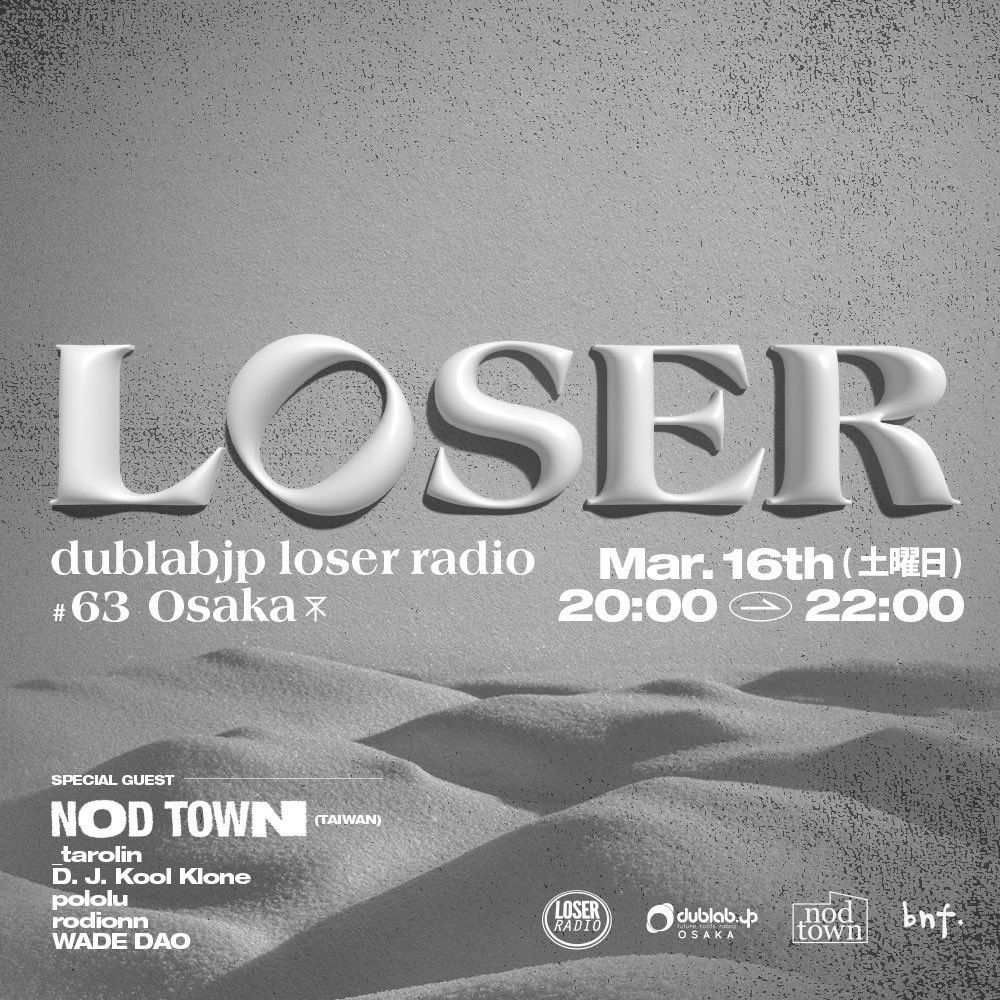 3/16のDUBLAB大阪”LOSER RADIO”#63 会場のLOSERは、Mayumikillerをホストに配信。ゲストに台湾からビートメイカークルーNOD TOWN CREWのセットを紹介した2時間配信でした。