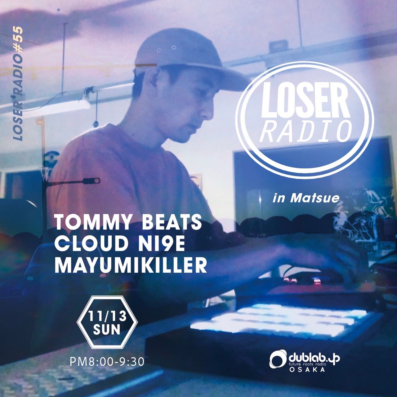 1/13のDUBLAB大阪”LOSER RADIO”#55 会場の松江Wood&Stoneは、Mayumikillerをホストに配信。ゲストにCLOUD NI9Eを迎え、TOMMY BEATSとCLOUD NI9Eとのトークショーを展開。