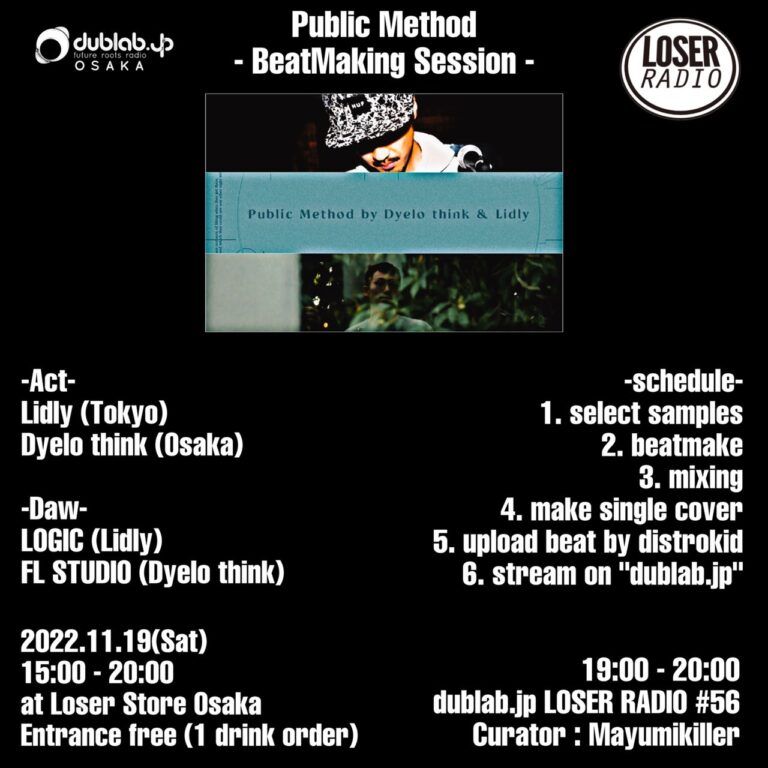 ゲストに東京からビートメイカーLidlyを迎え、Dyelothinkとのビートメイクセッションを開催。