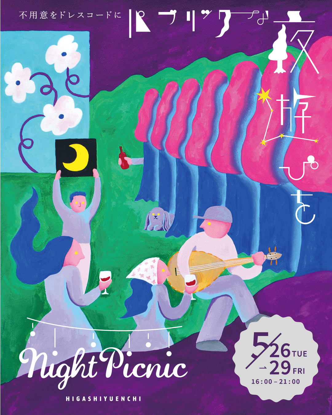 「夜の公園がもっと多様に、安心して楽しめる場所になるために」というコンセプトのもと、2018年の始動以来、神戸・東遊園地の風景をアップデートし続けてきた「NIGHT PICNIC」。単なるイベントではなく、パブリックな夜遊びを共創する「実験」であるというその姿勢に賛同し、dublab.jpがコラボレーションします。